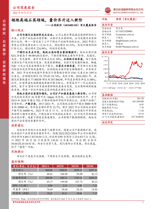 【东亚前海证券】【20221027】首次覆盖报告:领跑高端石英领域,量价齐升迈入新阶-26页 行业研究