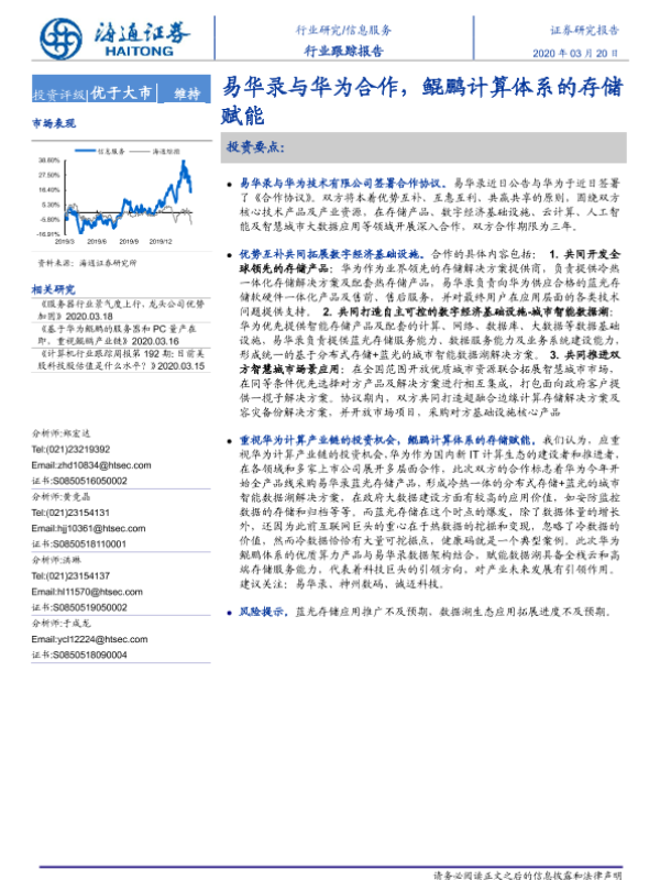 【海通证券】【20200320】易华录与华为合作,鲲鹏计算体系的存储赋能-2页 行业研究