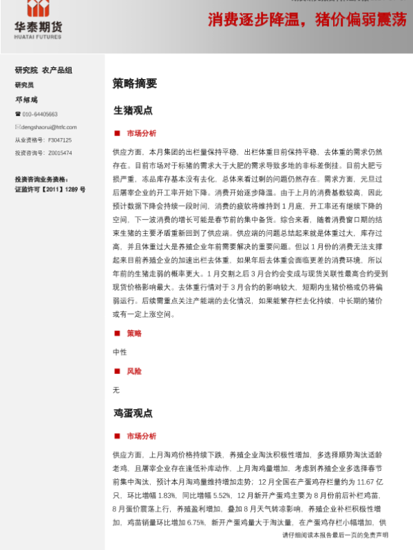 【华泰期货】【20240107】养殖月报:消费逐步降温,猪价偏弱震荡-14页 行业研究