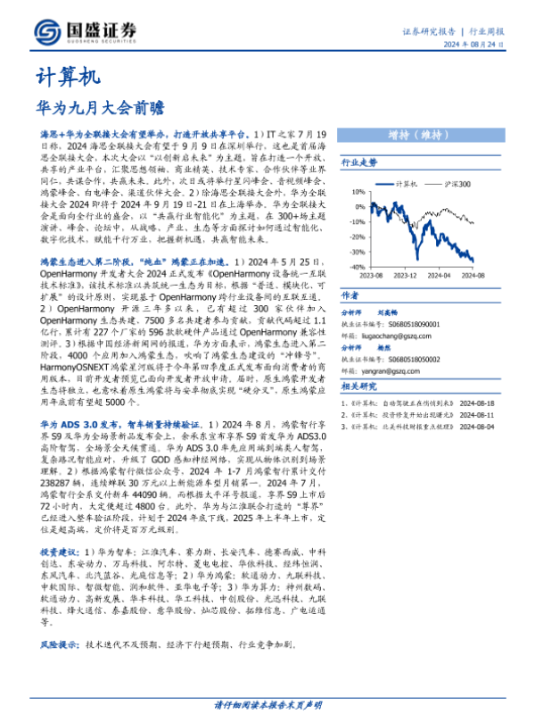 【国盛证券】【20240824】20240824-国盛证券-计算机行业周报:华为九月大会前瞻-11页 行业研究