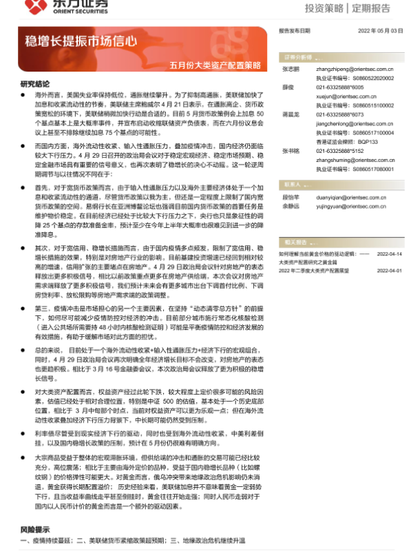 【东方证券】【20220503】五月份大类资产配置策略:稳增长提振市场信心-16页 行业研究