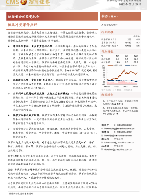 【海通证券】【20220224】金属及材料:俄乌冲突事件点评-迎接黄金的投资机会-3页 证券期货研究报告