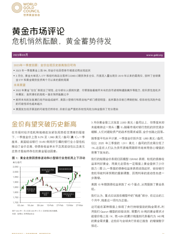 【世界黄金协会】【202303】世界黄金协会-黄金市场2023年一季度评论:危机悄然酝酿,黄金蓄势待发-6页 行业研究