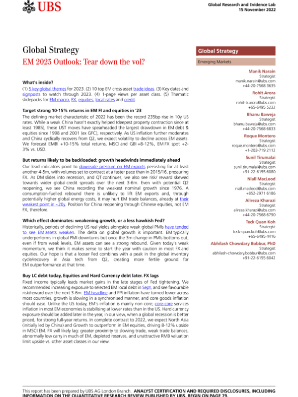 【UBS AG London Branch】【20221115】EM 2023 Outlook Tear down the vol?-83页 行业研究