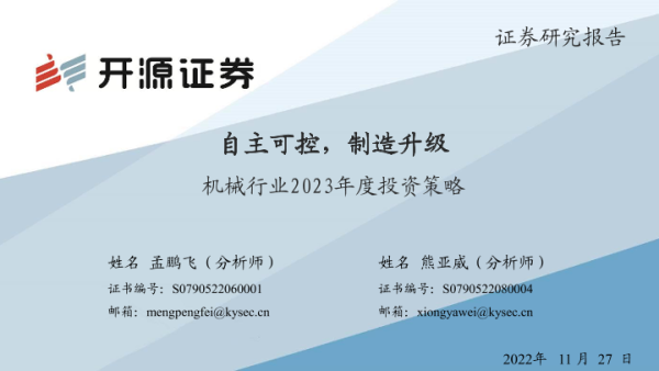 【开源证券】【20221127】机械行业2023年度投资策略:自主可控,制造升级-59页 行业研究
