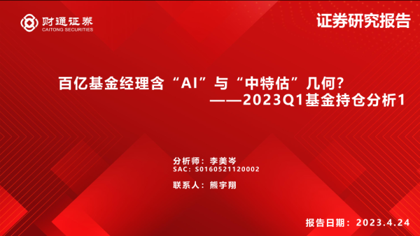 【财通证券】【20230424】2023Q1基金持仓分析1:百亿基金经理含“AI”与“中特估”几何?-16页 行业研究
