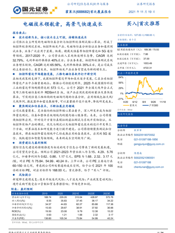 【国元证券】【20211119】霍莱沃-688682.SH-首次覆盖报告:电磁技术领航者,高景气快速成长-34页 行业研究