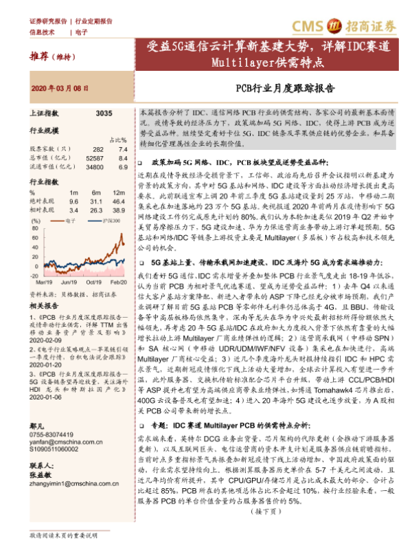【海通证券】【20200308】PCB行业月度跟踪报告:受益5G通信云计算新基建大势,详解IDC赛道Multilayer供需特点-42页 行业研究