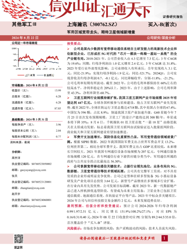 【山西证券】【20240822】军用区域宽带龙头,期待卫星领域新增量-32页 公司研究
