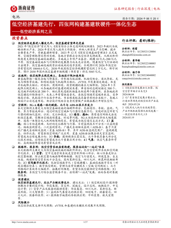 【浙商证券】【20240625】低空经济基建先行,四张网构建基建软硬件一体化生态-37页 证券期货研究报告