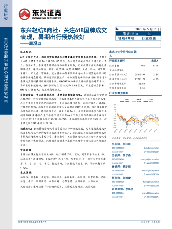 【东兴证券】【20230531】东兴轻纺&商社:关注618国牌成交表现,暑期出行预热较好-14页 行业研究
