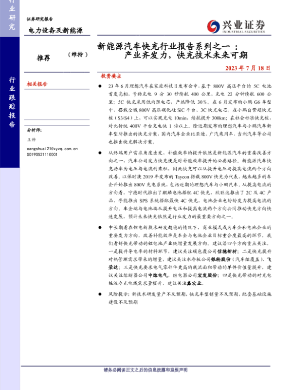 【兴业证券】【20230718】新能源汽车快充行业报告系列之一:产业齐发力,快充技术未来可期-12页 行业研究