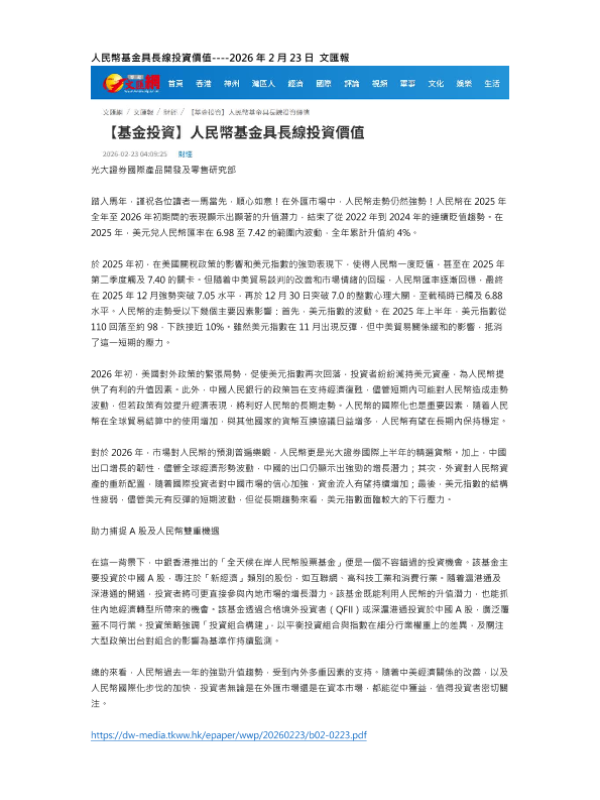 【光大证券国际产品开发及零售研究部】【202602】人民幣基金具長線投資價值-1页 证券期货研究报告