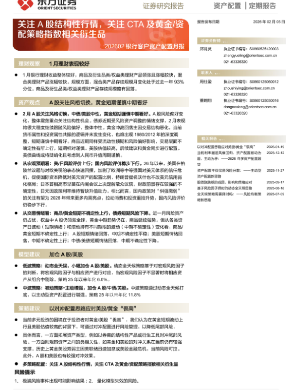 【东方证券】【202602】关注A股结构性行情,关注CTA及黄金/资配策略指数相关衍生品-15页 证券期货研究报告