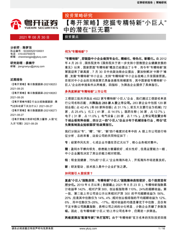 【粤开证券】【20210830】挖掘专精特新“小巨人”中的潜在“巨无霸”-16页 行业研究