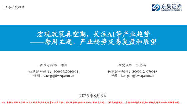 【东吴证券】【20250803】每周主题_产业趋势交易复盘和展望-19页 证券期货研究报告