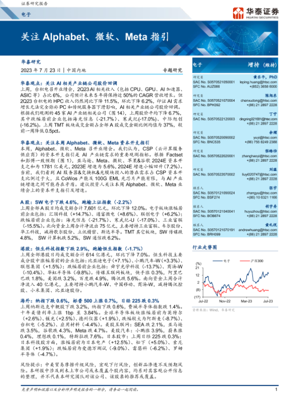 【华泰证券】【20230723】20230723-华泰证券-电子专题研究:关注Alphabet、微软、Meta指引-42页 行业研究