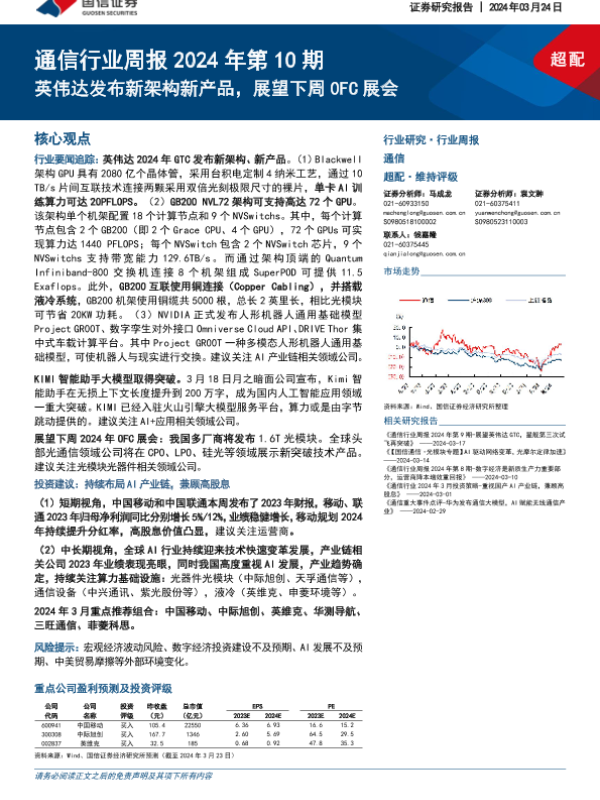 【国信证券】【20240324】通信行业周报2024年第10期:英伟达发布新架构新产品,展望下周OFC展会-33页 行业研究