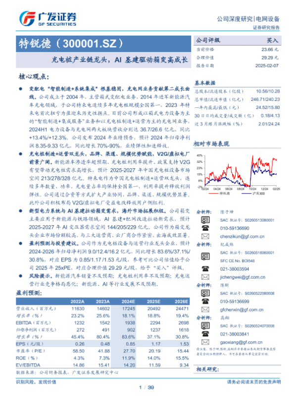 【广发证券】【20250207】特锐德(300001.SZ):充电桩产业链龙头,AI基建驱动箱变高成长-39页 行业研究