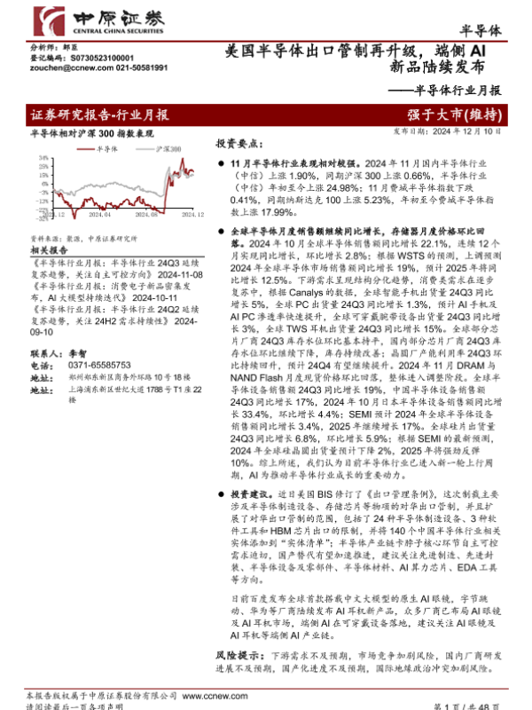 【中原证券】【20241210】2024年12月13日更新-【中原证券】半导体行业月报:美国半导体出口管制再升级,端侧AI新品陆续发布-48页 行业研究
