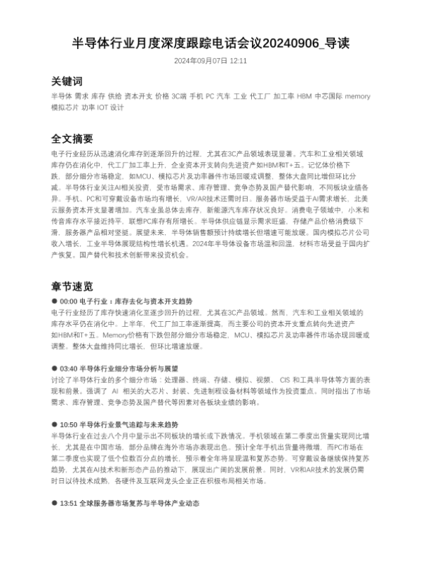 【未知】【20240906】半导体行业月度深度跟踪电话会议20240906-6页 会议纪要