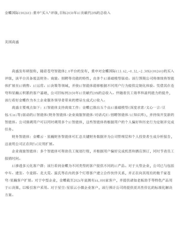 【Goldman Sachs】【2023】重申“买入”评级,目标2030年AI贡献约20%的总收入-1页 公司研究