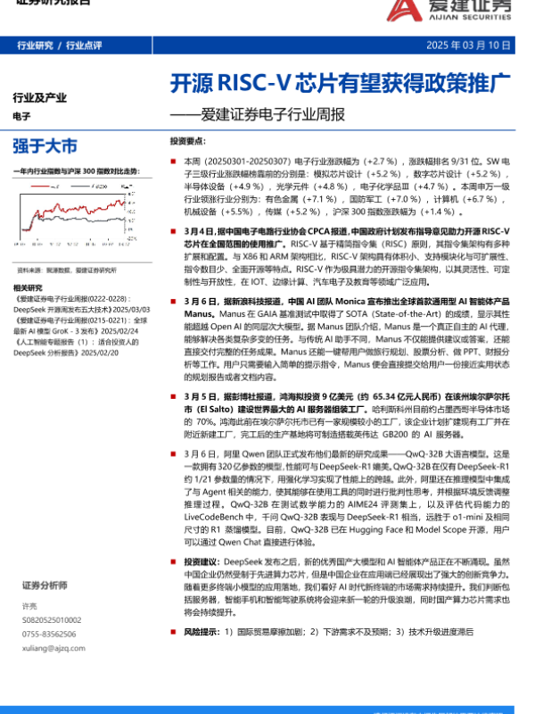 【爱建证券】【20250310】爱建证券-电子行业周报:开源RISC-V芯片有望获得政策推广-14页 行业研究