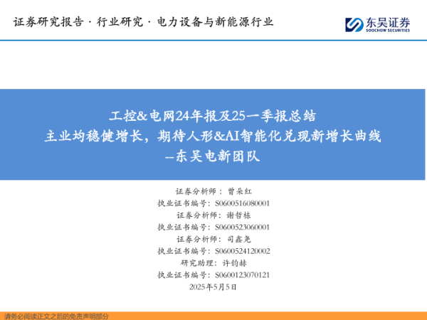 【东吴证券】【20250505】电力设备与新能源行业工控&电网24年报及25一季报总结-32页 行业研究
