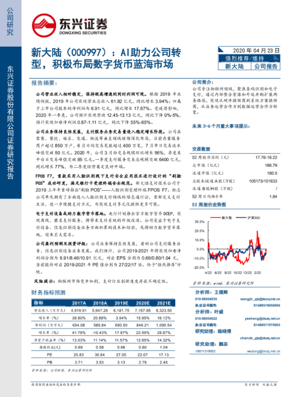【东兴证券】【20200423】新大陆(000997):AI助力公司转型,积极布局数字货币蓝海市场-26页 行业研究