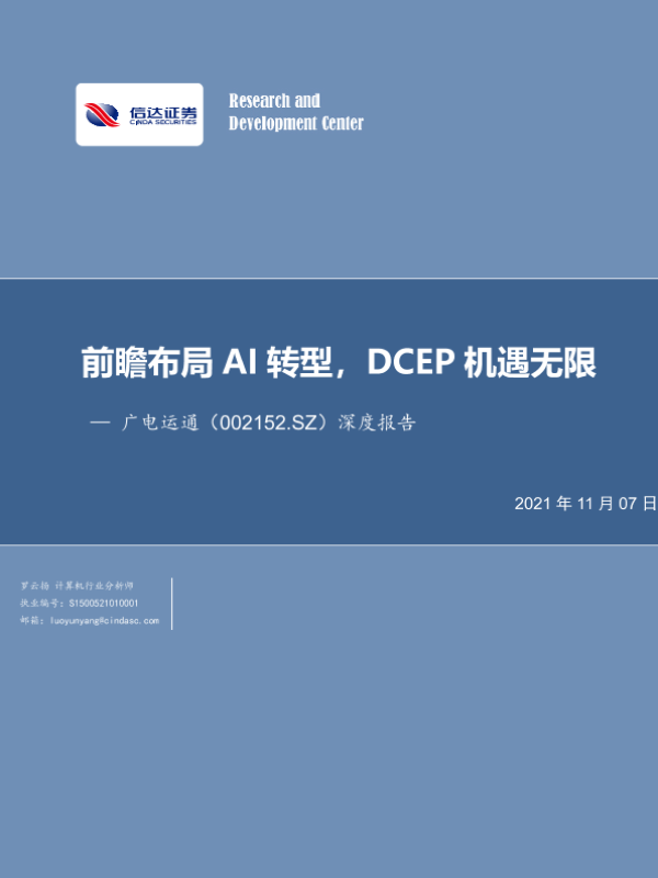 【信达证券】【20211107】20211107-信达证券-广电运通-002152.SZ-深度报告:前瞻布局AI转型,DCEP机遇无限-35页 行业研究