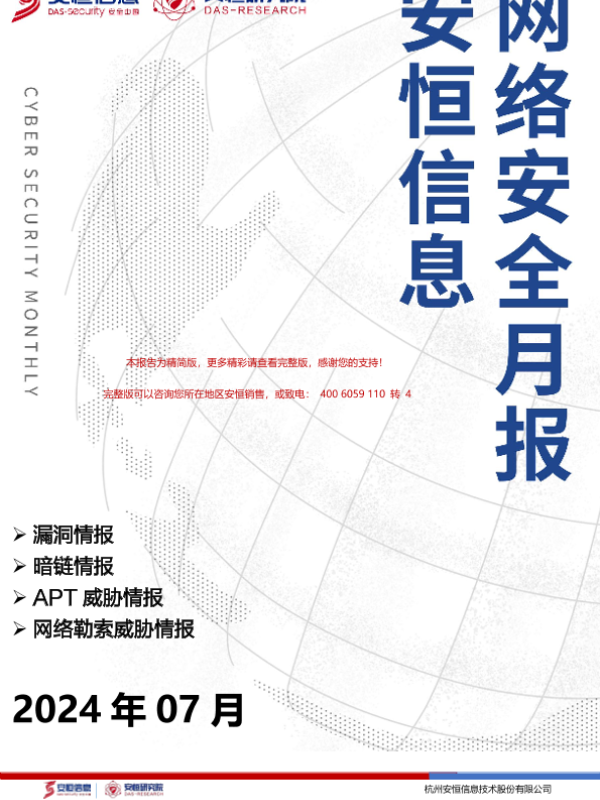 【杭州安恒信息技术股份有限公司】【20240701】2024年7月安恒信息网络安全月报(精简版)-8页 行业研究