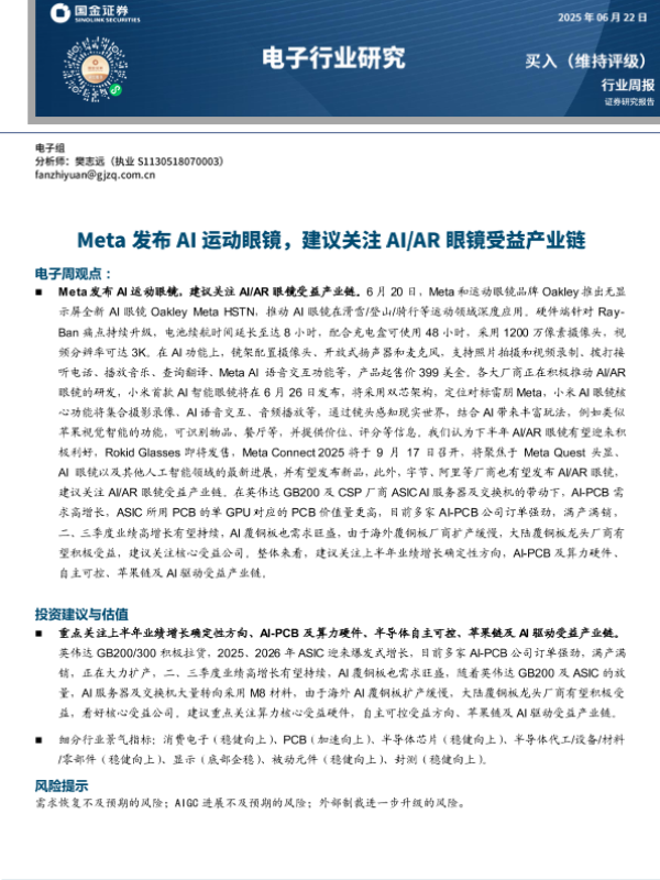 【国金证券】【20250622】Meta发布AI运动眼镜_建议关注AI_AR眼镜受益产业链-10页 行业研究