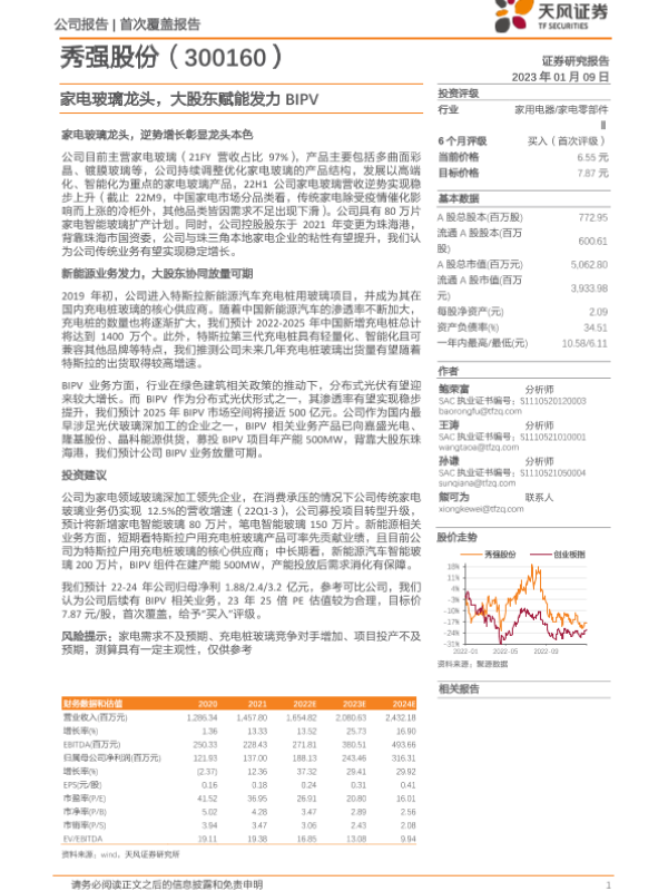 【天风证券】【20230109】家电玻璃龙头,大股东赋能发力BIPV-17页 行业研究