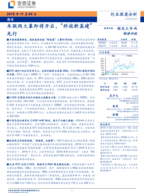 【安信证券】【20191104】通信行业深度分析:车联网大幕即将开启,“科技新基建”先行-45页 行业研究