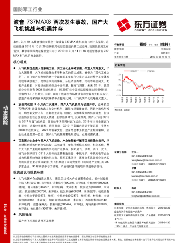 【东方证券】【20190313】国防军工行业动态跟踪:波音737MAX8两次发生事故,国产大飞机挑战与机遇并存-3页 证券期货研究报告