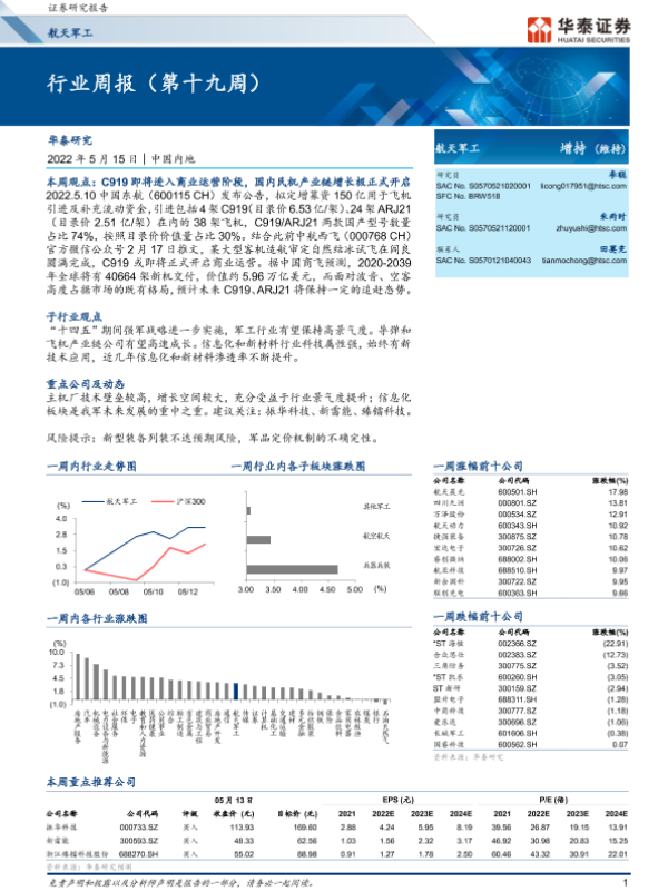 【华泰证券】【20220515】20220515-华泰证券-航天军工行业周报(第十九周)-14页 行业研究