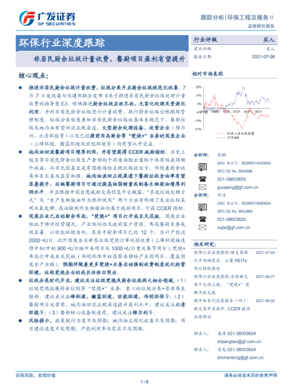 【广发证券】【20210708】非居民厨余垃圾计量收费,餐厨项目盈利有望提升-5页 行业研究