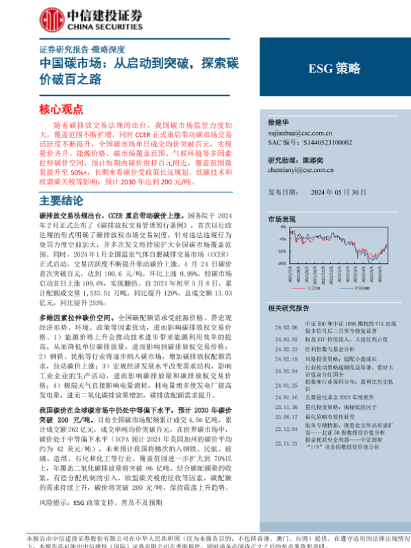【中信建投证券】【20240530】中国碳市场:从启动到突破,探索碳价破百之路-17页 行业研究