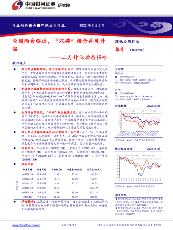 【银河证券】【20220303】环保公用行业二月行业动态报告:全国两会临近,“双碳”概念再度升温-17页 行业研究