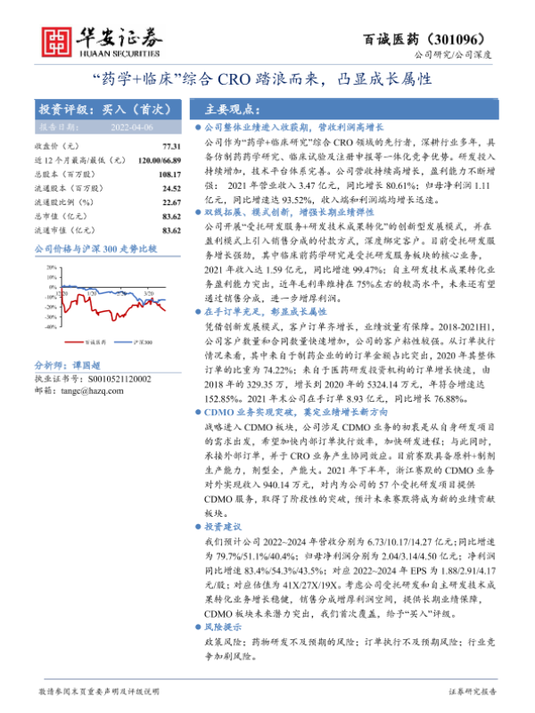 【华安证券】【20220406】“药学+临床”综合CRO踏浪而来,凸显成长属性-22页 行业研究