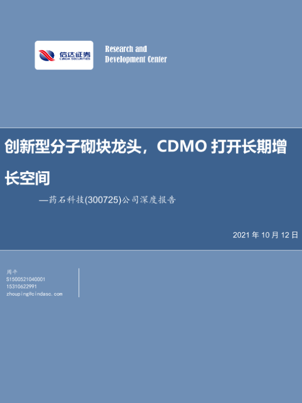 【信达证券】【20211012】20211012-信达证券-药石科技-300725.SZ-公司深度报告:创新型分子砌块龙头,CDMO打开长期增长空间-24页 行业研究