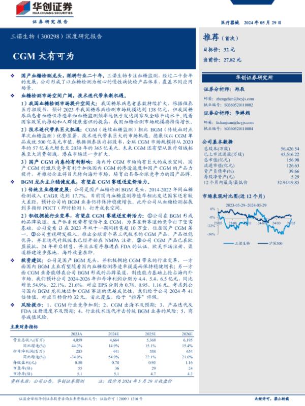 【华创证券】【20240529】三诺生物(300298)深度研究报告:CGM大有可为-29页 行业研究