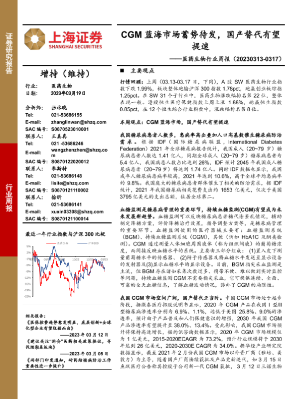 【上海证券】【20230319】医药生物行业周报:CGM蓝海市场蓄势待发,国产替代有望提速-24页 行业研究