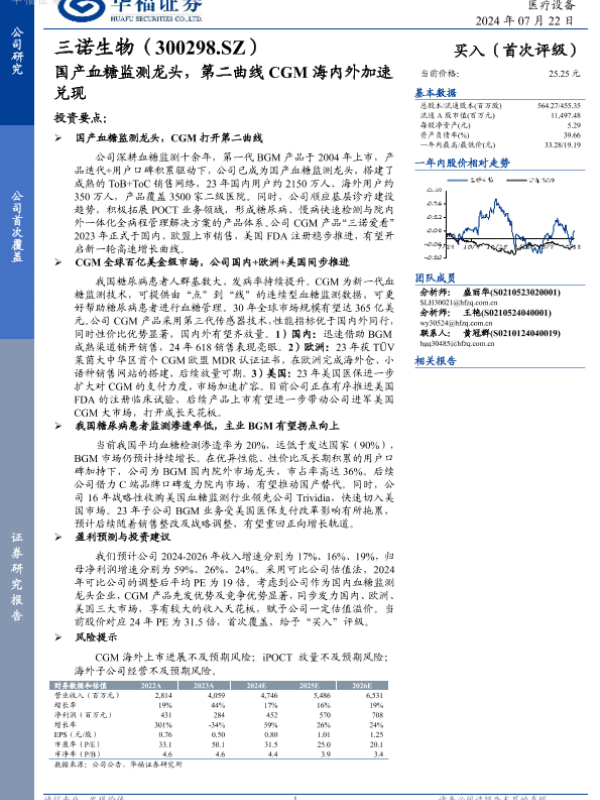 【华福证券】【20240722】三诺生物:国产血糖监测龙头,第二曲线CGM海内外加速兑现-18页 公司研究