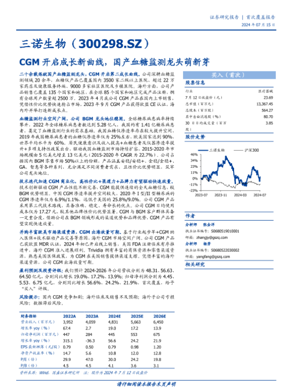 【国盛证券】【20240715】三诺生物(300298)CGM开启成长新曲线,国产血糖监测龙头萌新芽-35页 行业研究