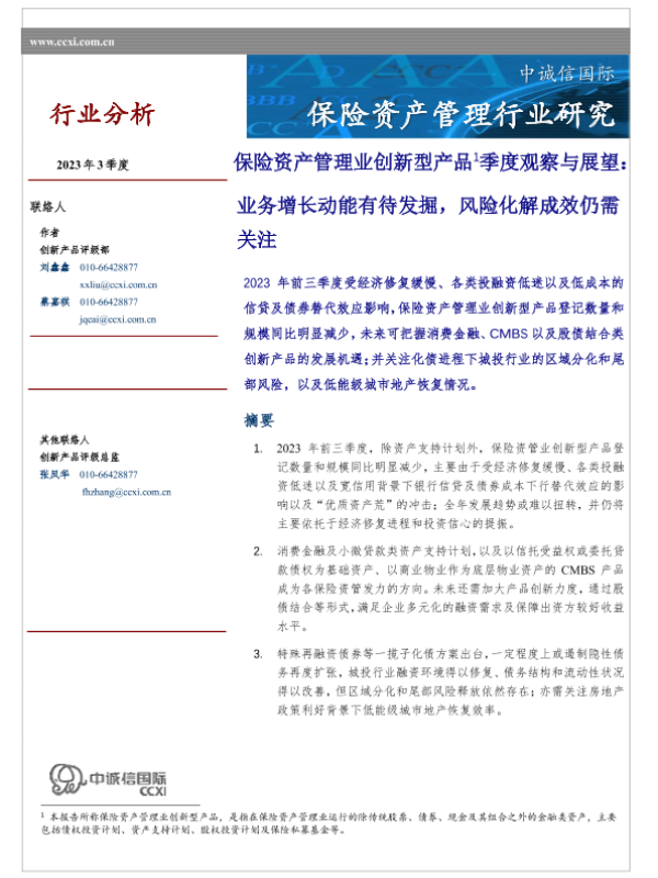 【中诚信国际】【20230930】中诚信-保险资产管理业创新型产品季度观察与展望(2023年3季度)-11页 行业研究