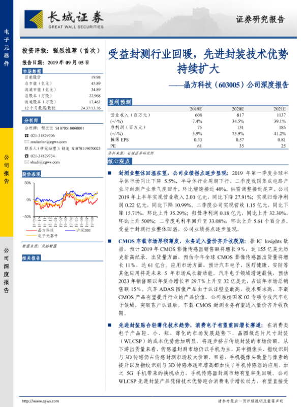 【长城证券】【20190905】20190905-长城证券-晶方科技-603005.SH-公司深度报告:受益封测行业回暖,先进封装技术优势持续扩大-33页 行业研究