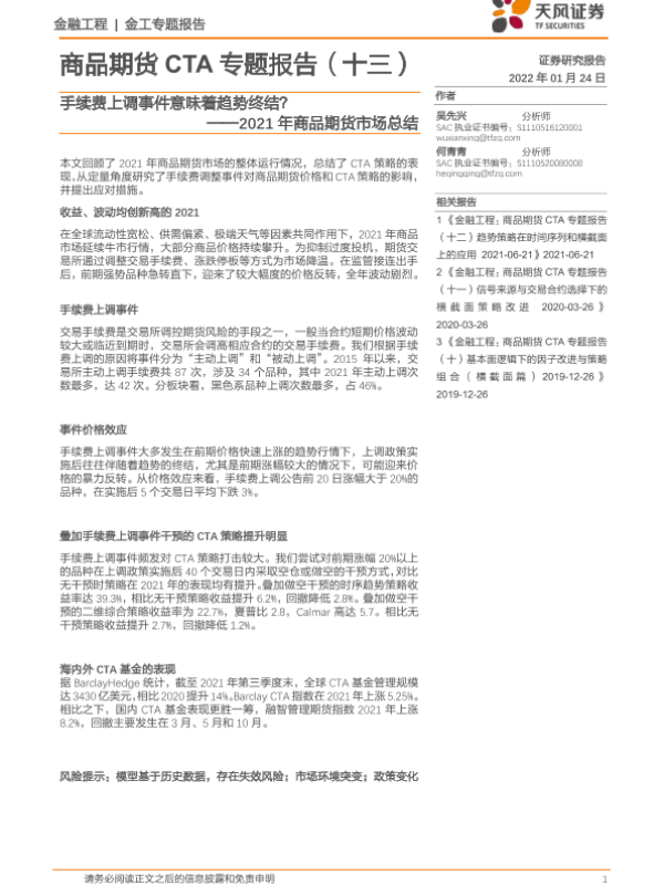 【天风证券】【20220124】商品期货CTA专题报告(十三):2021年商品期货市场总结,手续费上调事件意味着趋势终结?-21页 行业研究