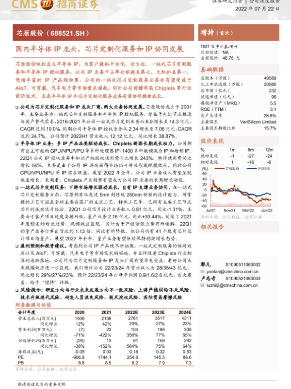 【海通证券】【20220722】芯原股份-国内半导体IP龙头,芯片定制化服务和IP协同发展-12页 公司研究