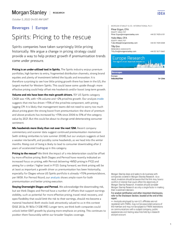 【Morgan Stanley】【20221005】Beverages | Europe - Spirits Pricing to the rescue-22页 行业研究